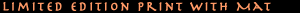 Mat conservation mat board with 100% cotton core, acid-free. Border: A minimum border of 1" is added beyond the image area for matting. Framing and custom sizes available upon request. |